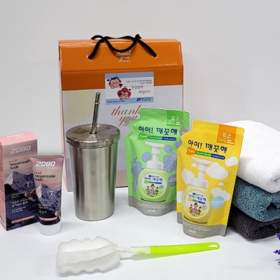 선물세트6종 아이꺠끗해 텀블러 핑크소금 치약 타올 타월