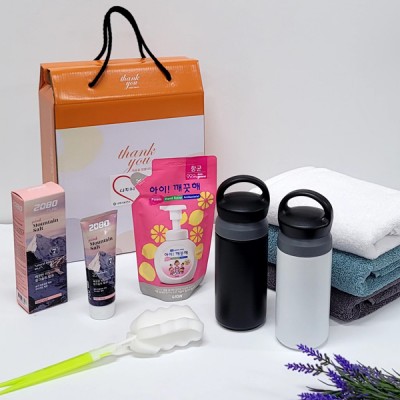 선물세트6종 텀블러 아이깨끗해 핑크소금 치약 타올 타월