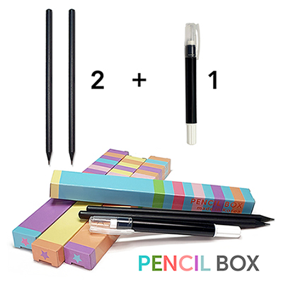 흑목원형연필+슬림회전지우개 2+1세트(펜슬박스)