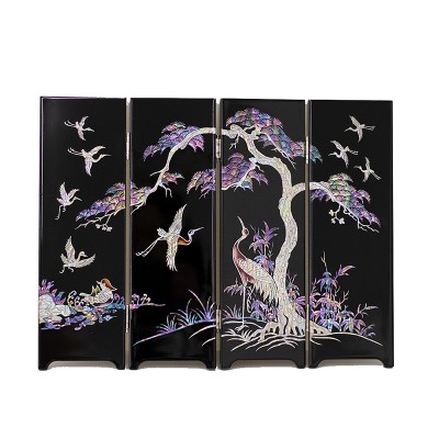 나전칠기병풍(채화송학4폭병풍)
