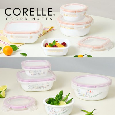 코렐_코디네이츠 밀크글라스 밀폐용기 혼합 4종 (산호세/자카드밴드)
