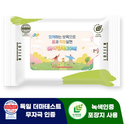 “더마 테스트 완료 + 녹색 인증 포장 적용! 같은 가격에 한 단계 업그레이드된 로티엔 물티슈를 만나보세요.”