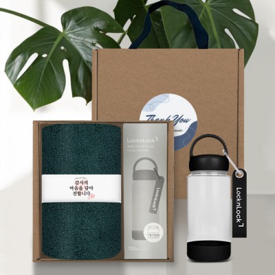 송월타올 모던라이프 핸들패키지 선물세트 NO.4 (호텔수건 200G 40수 1매+락앤락 키링 보틀 1개+띠지+스티커)